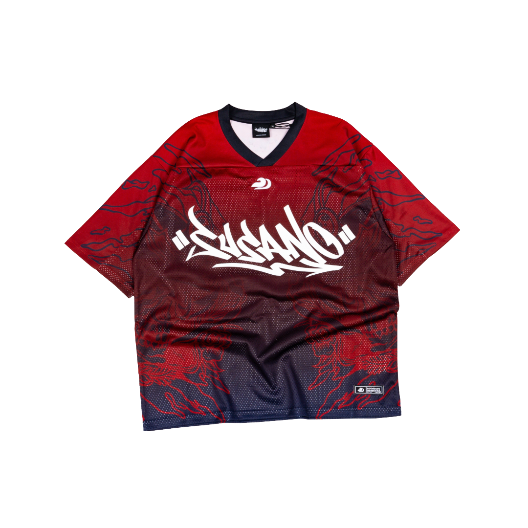 Cut from premium mesh fabric that breathes when you move, it carries SUSANO’s raw handstyle across the chest like a battle flag. Every stitch is intentional, every line oversized to demand space not ask for it.